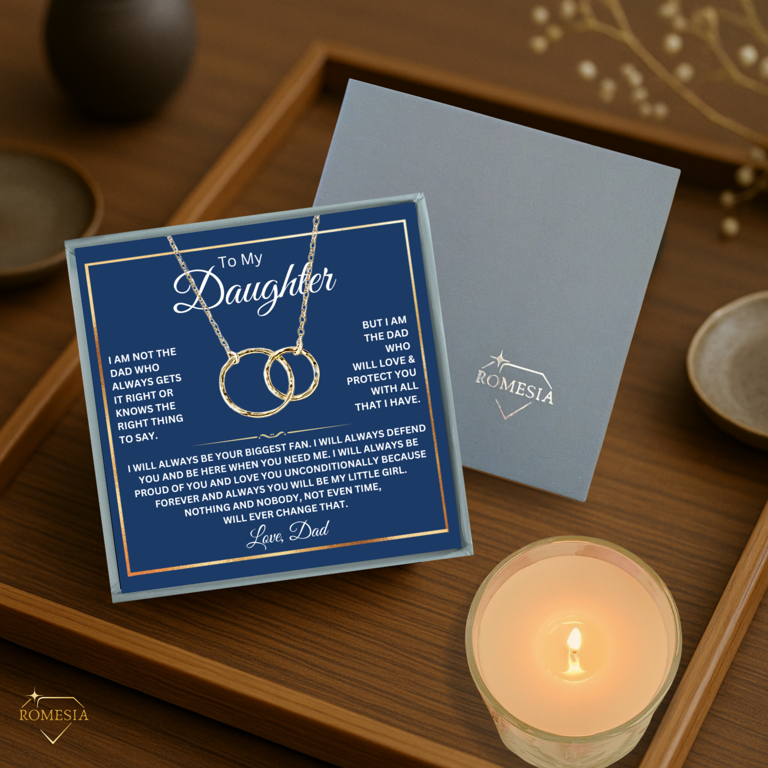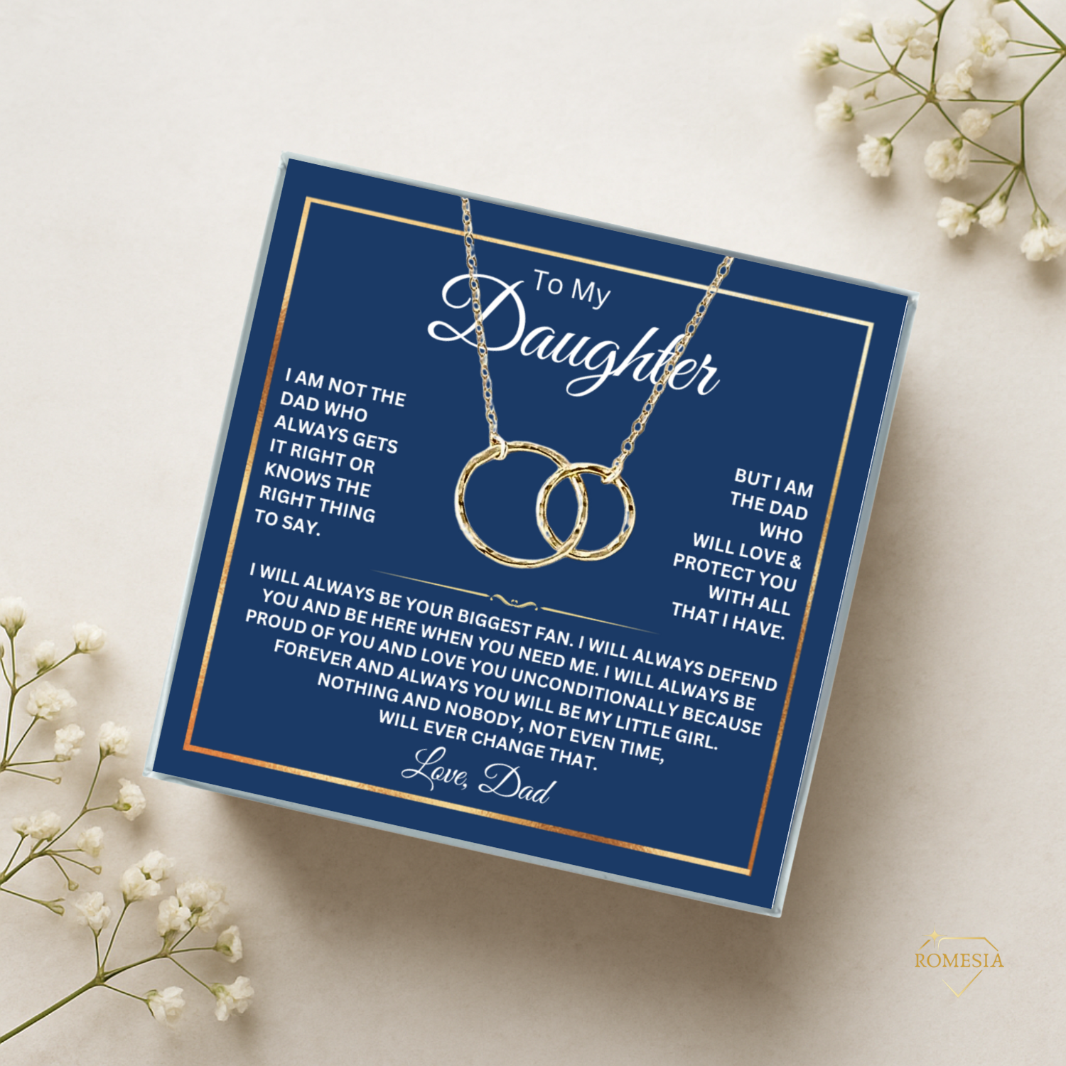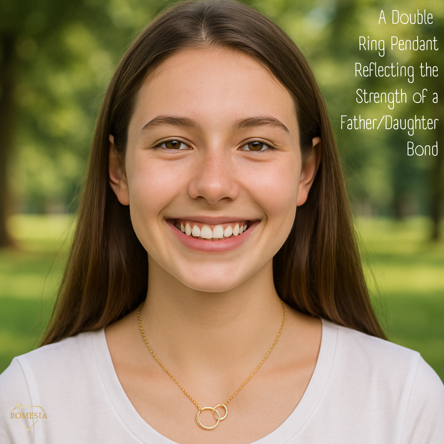 Show your daughter just how loved she is with this elegant Interlocked Double Circle Necklace from Romesia — a timeless symbol of love, unity, and the unbreakable bond between father and daughter.
