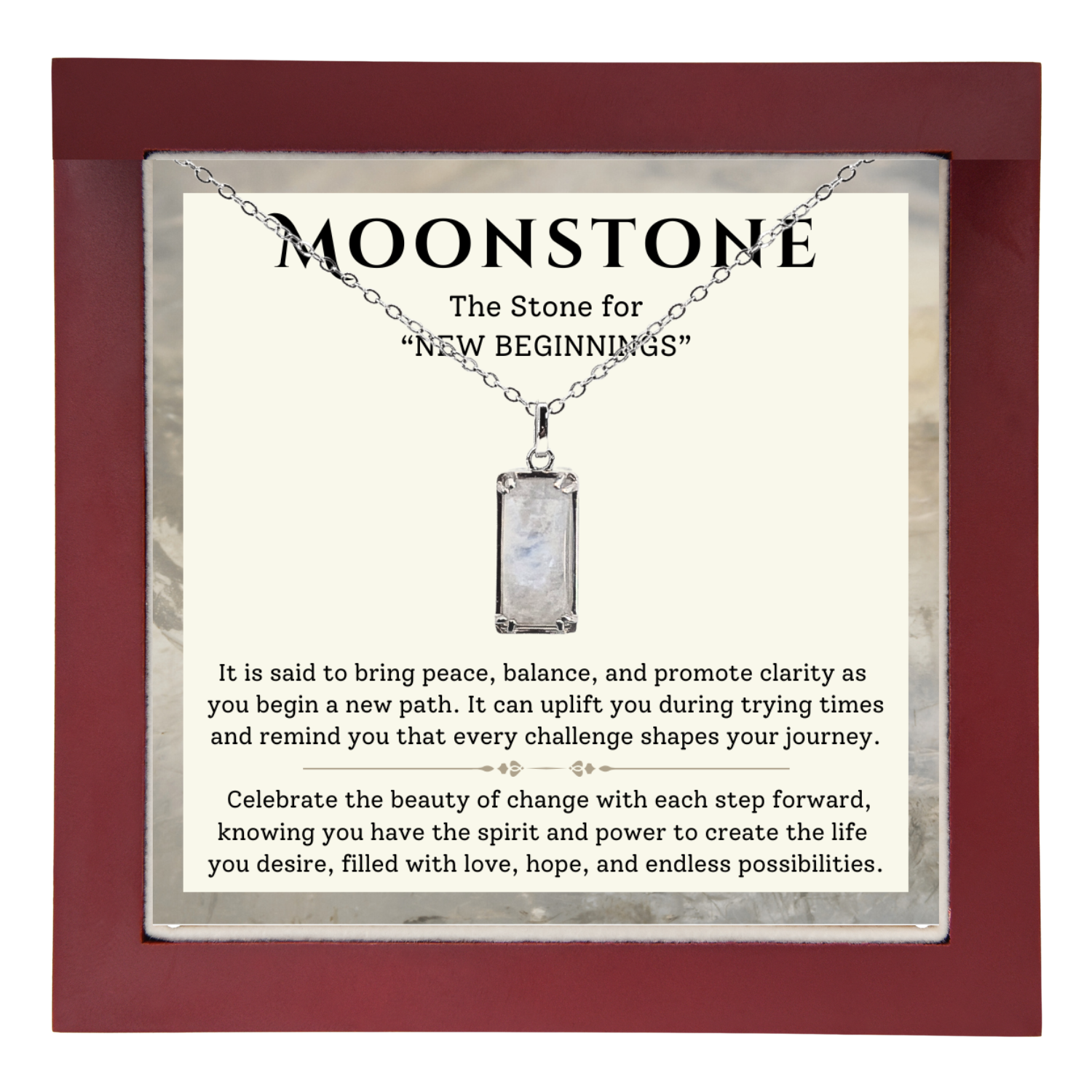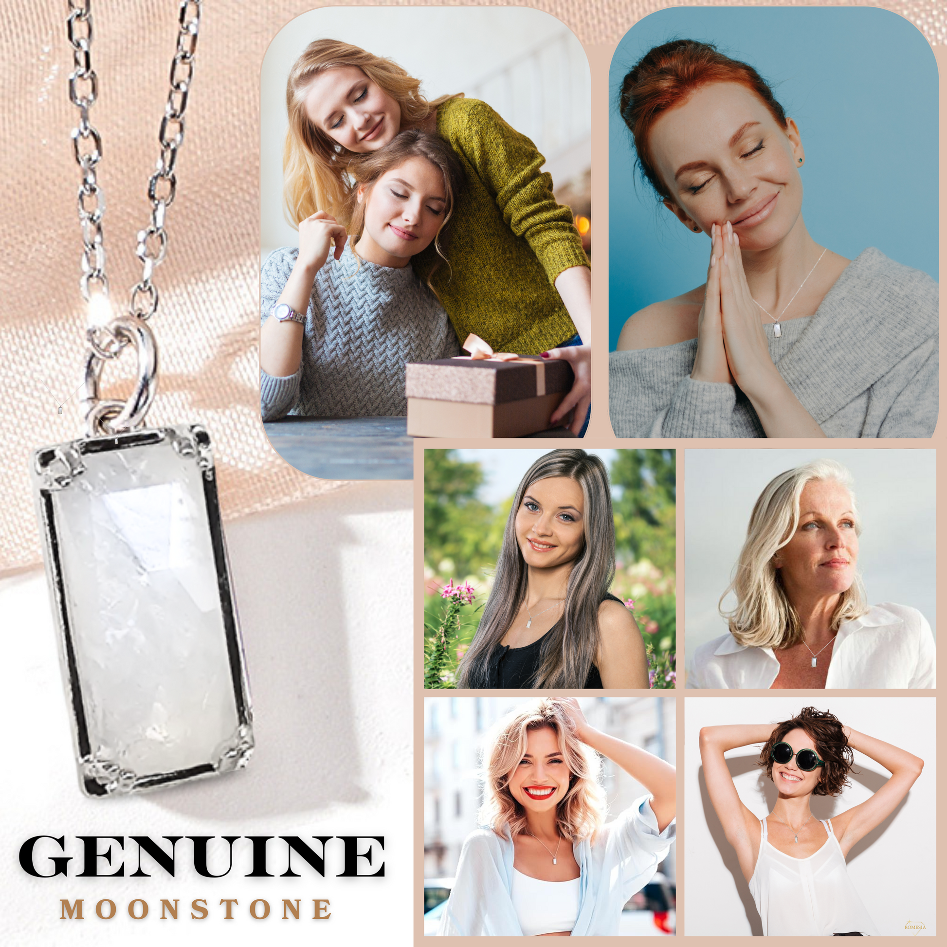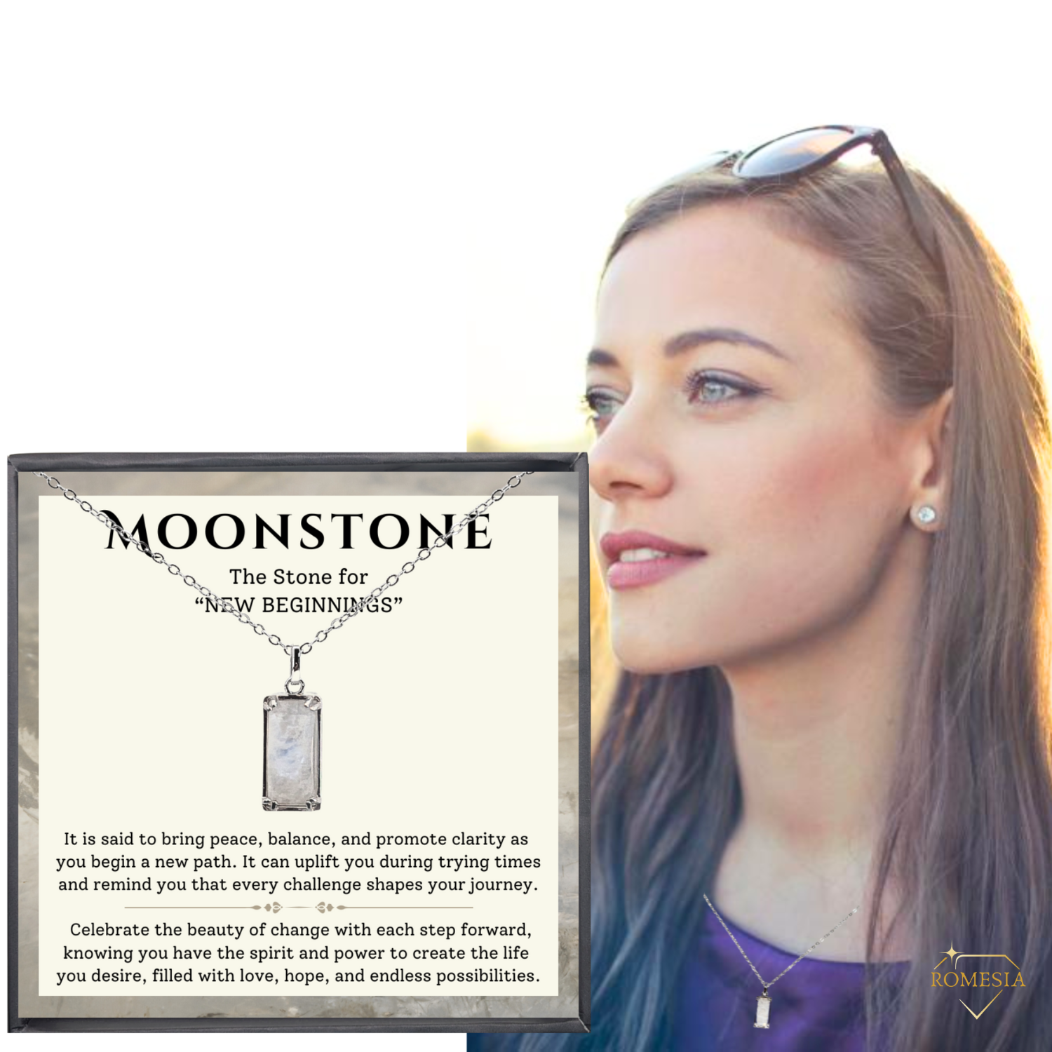 MOON STONE JEWELRY: Referred to as the “Stone of New Beginnings” is a sterling silver pendant necklace to Celebrate her, express your admiration or send your congratulations and warmest wishes for a new chapter in her life such as retirement gifts for women or let the nurturing energy of the moon stone necklace bring her guidance and comfort, illuminating the possibilities that lie ahead. Every Moonstone Necklace comes with a Certificate of Authenticity.