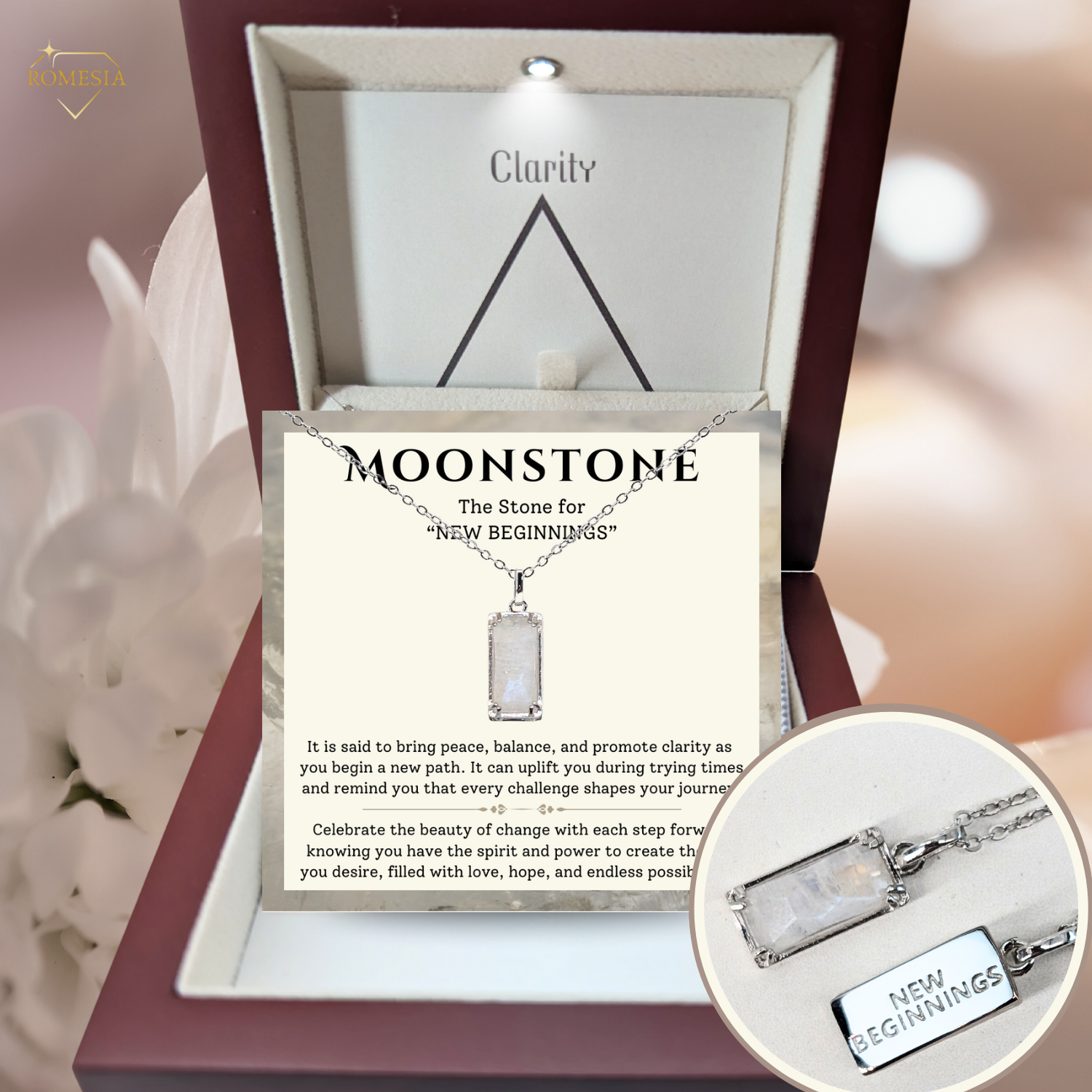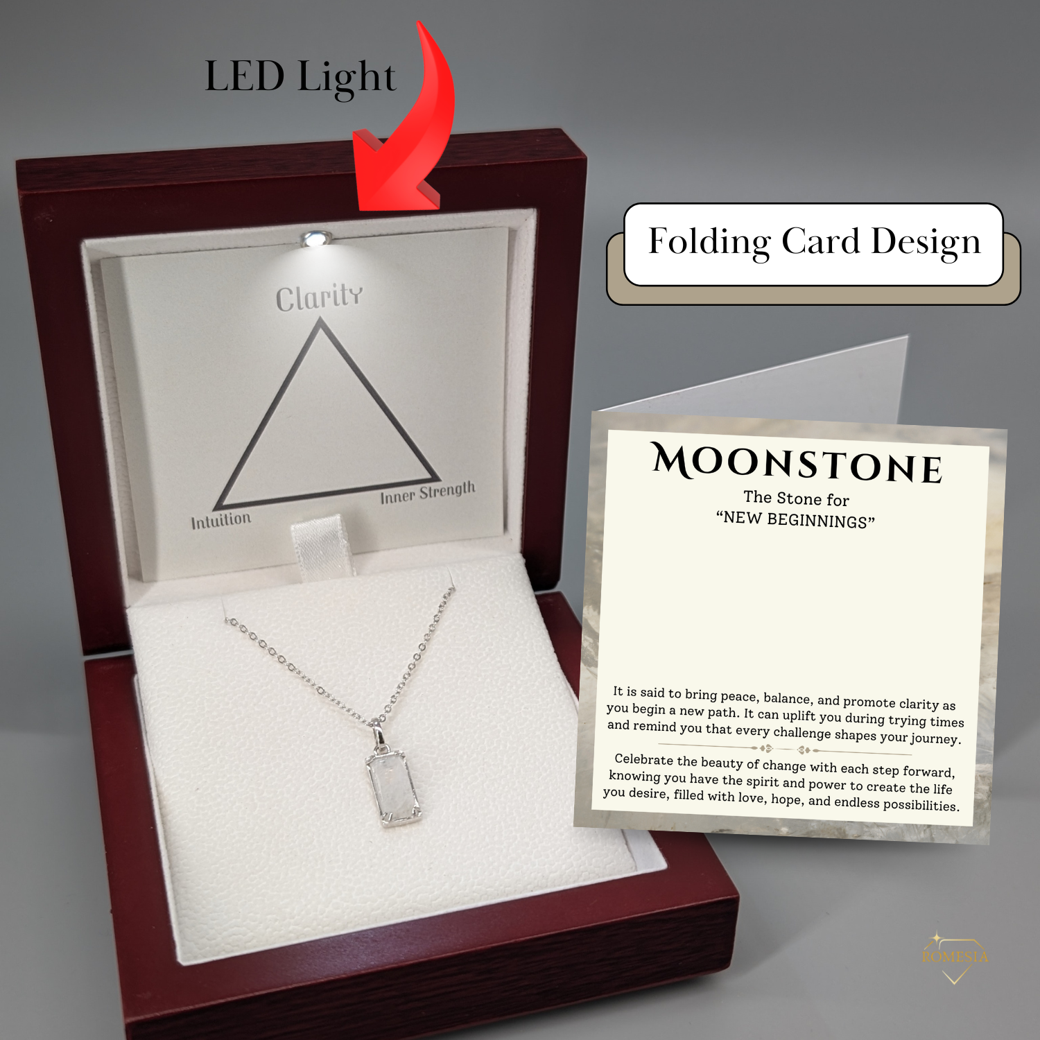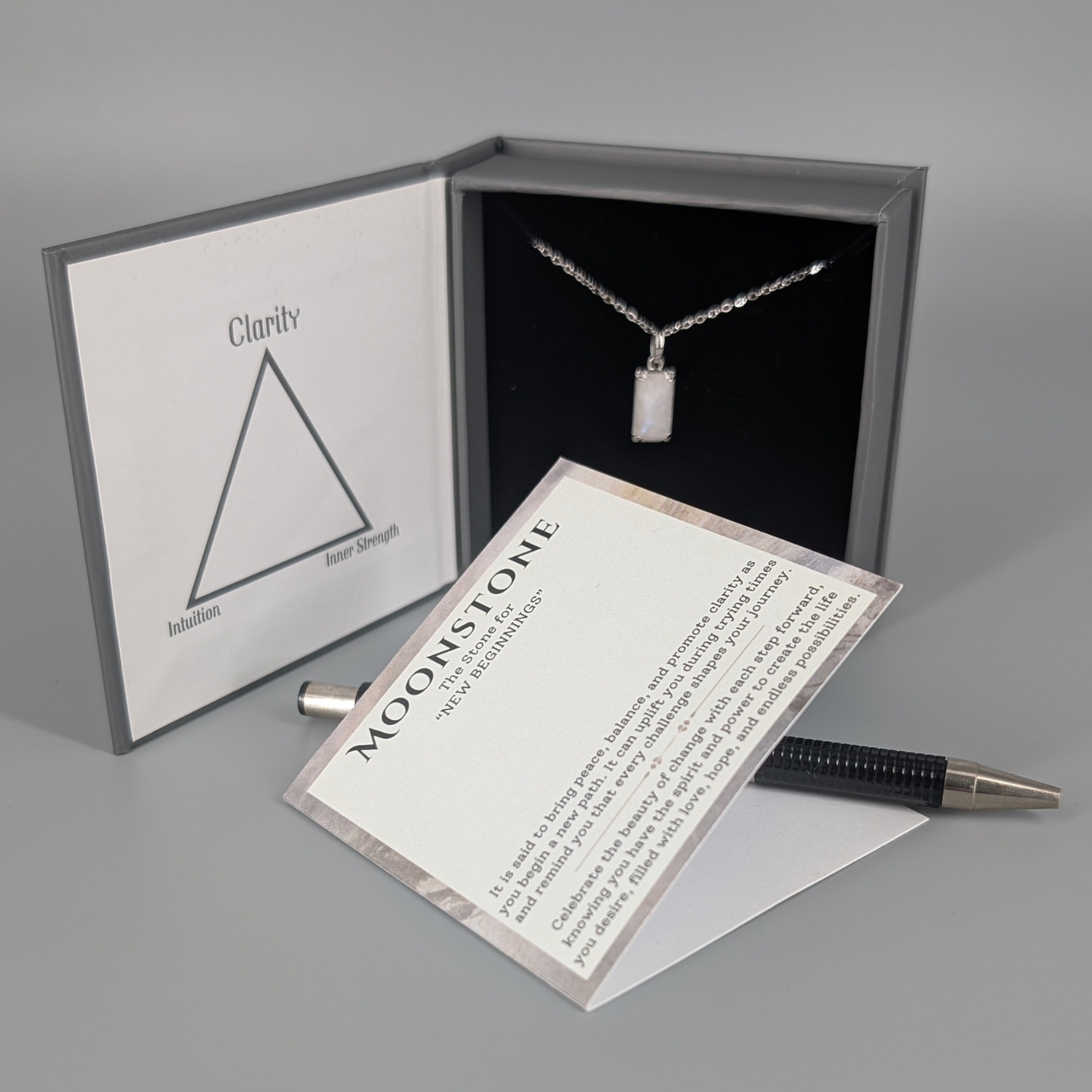 MOON STONE JEWELRY: Referred to as the “Stone of New Beginnings” is a sterling silver pendant necklace to Celebrate her, express your admiration or send your congratulations and warmest wishes for a new chapter in her life such as retirement gifts for women or let the nurturing energy of the moon stone necklace bring her guidance and comfort, illuminating the possibilities that lie ahead. Every Moonstone Necklace comes with a Certificate of Authenticity.
