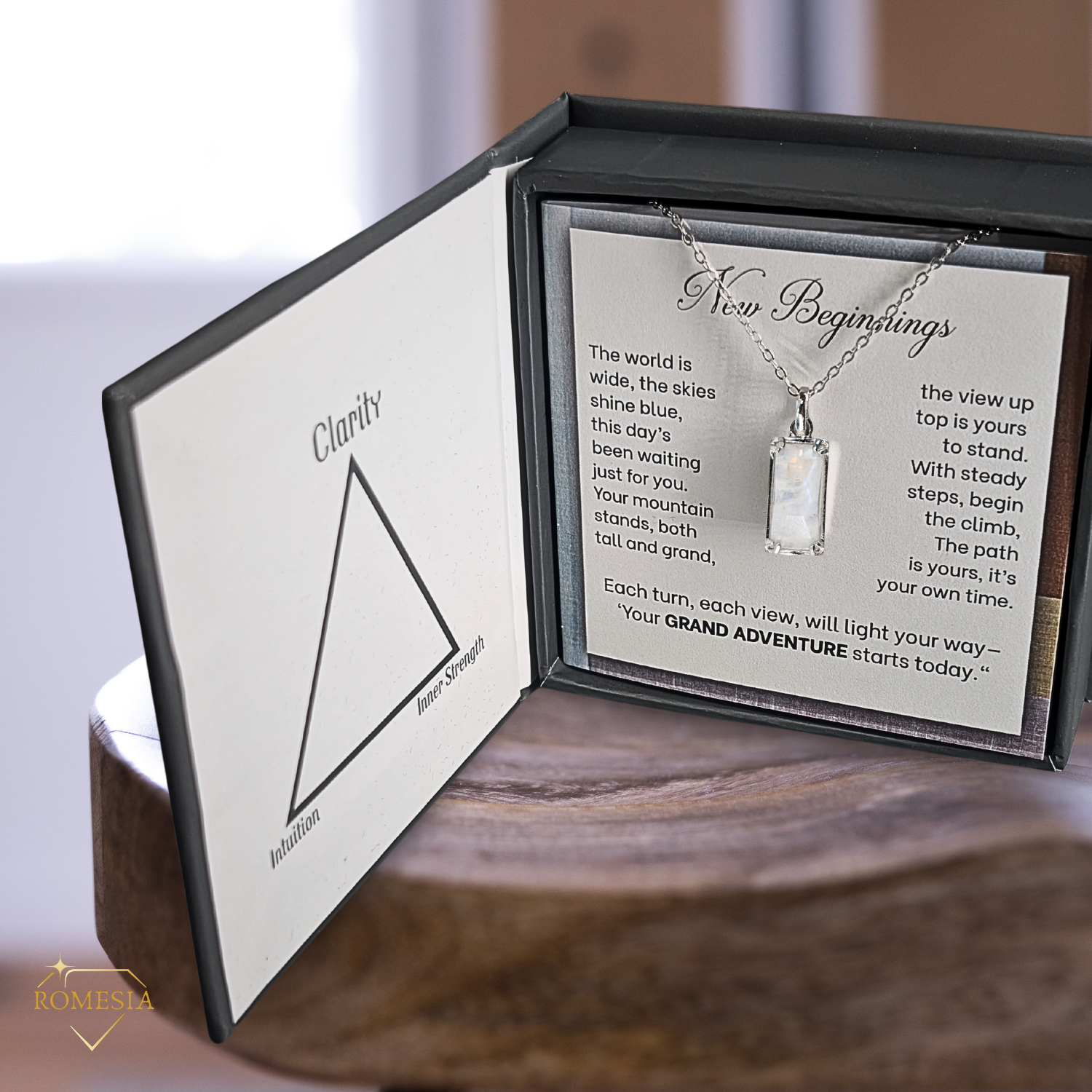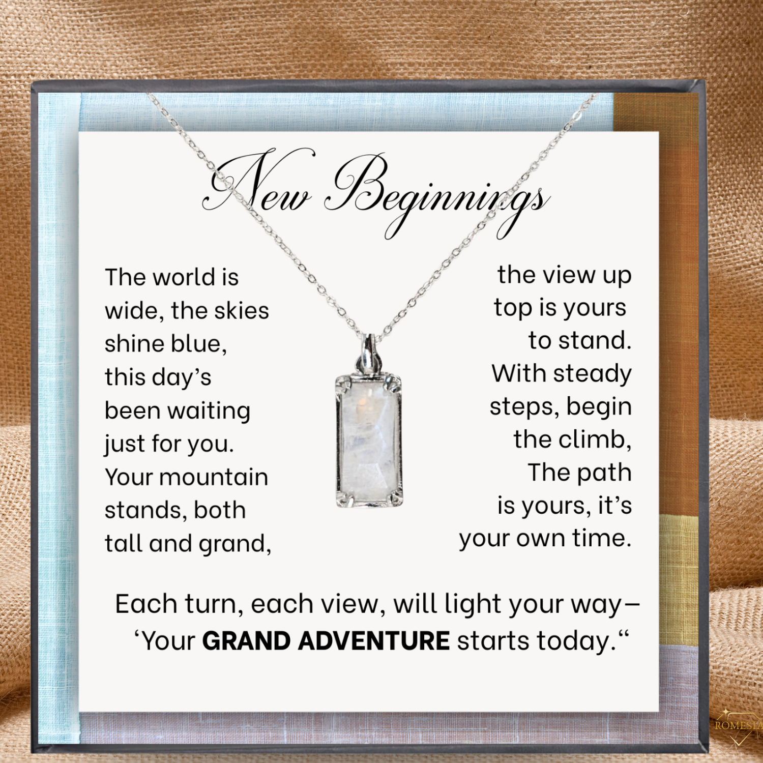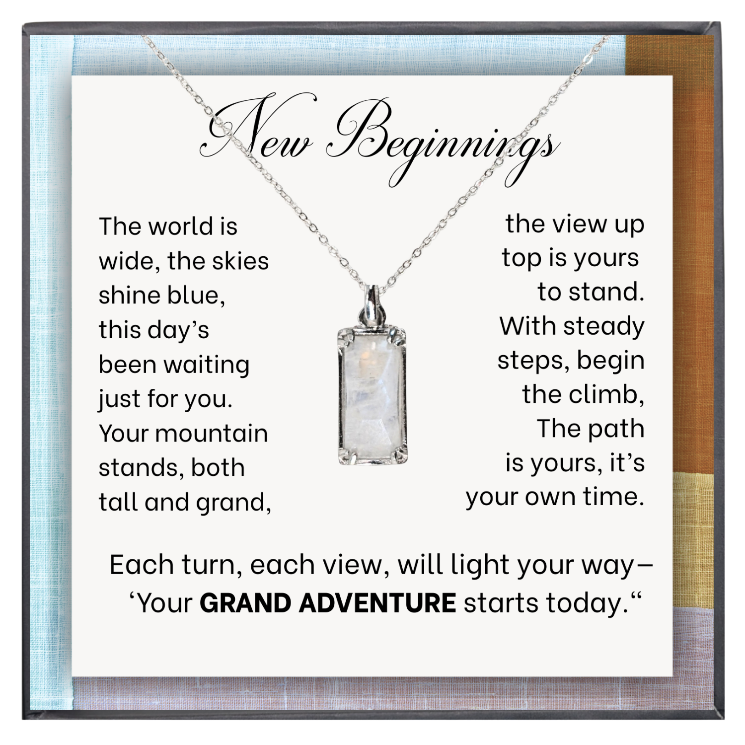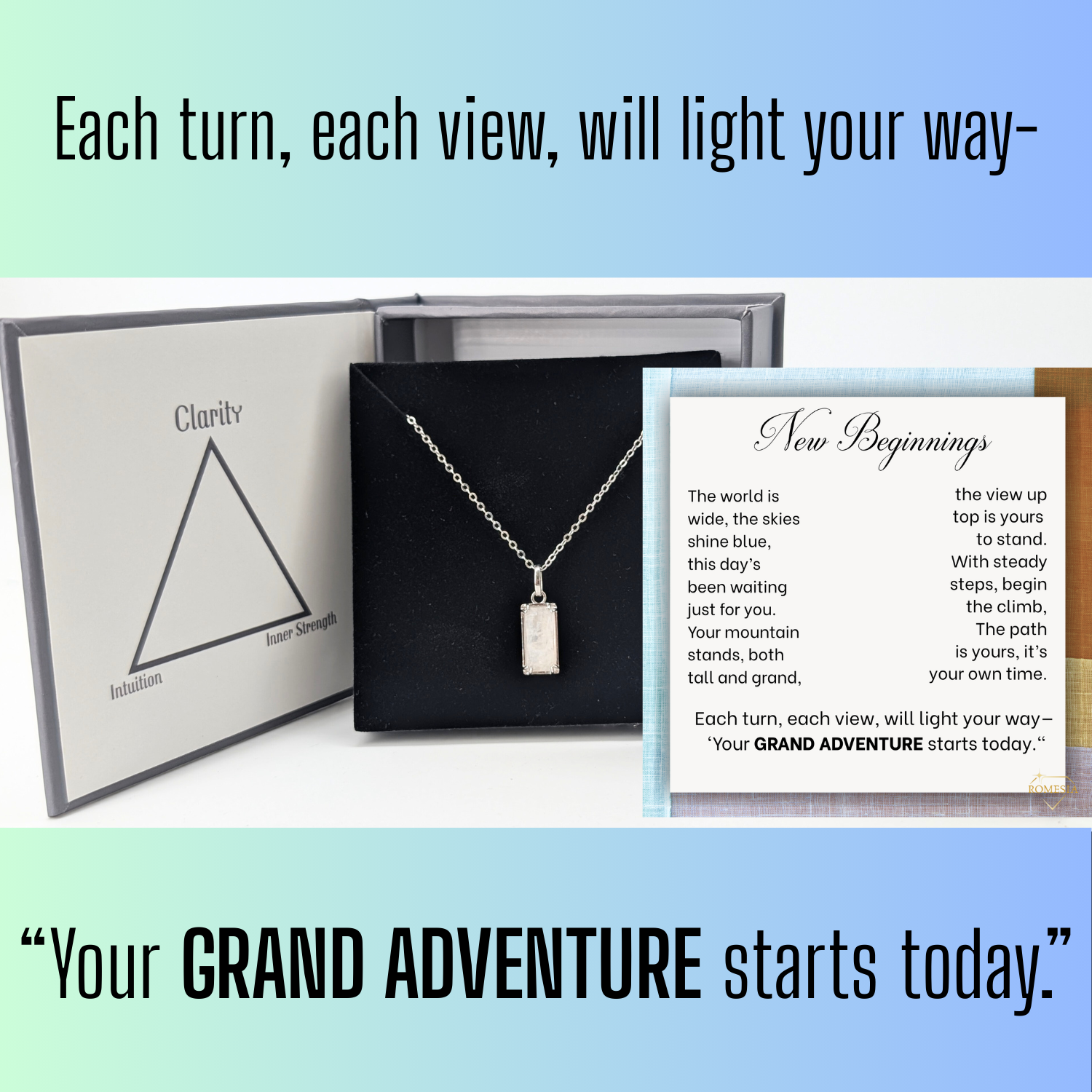 Accompanying the necklace is a folding message card designed around the theme of a grand adventure. Whether it’s a milestone moment, a fresh start, or a bold new chapter in life, the card’s heartfelt words inspire courage, exploration, and wonder. Together, the necklace and card make the perfect keepsake for anyone embarking on life’s greatest journeys.