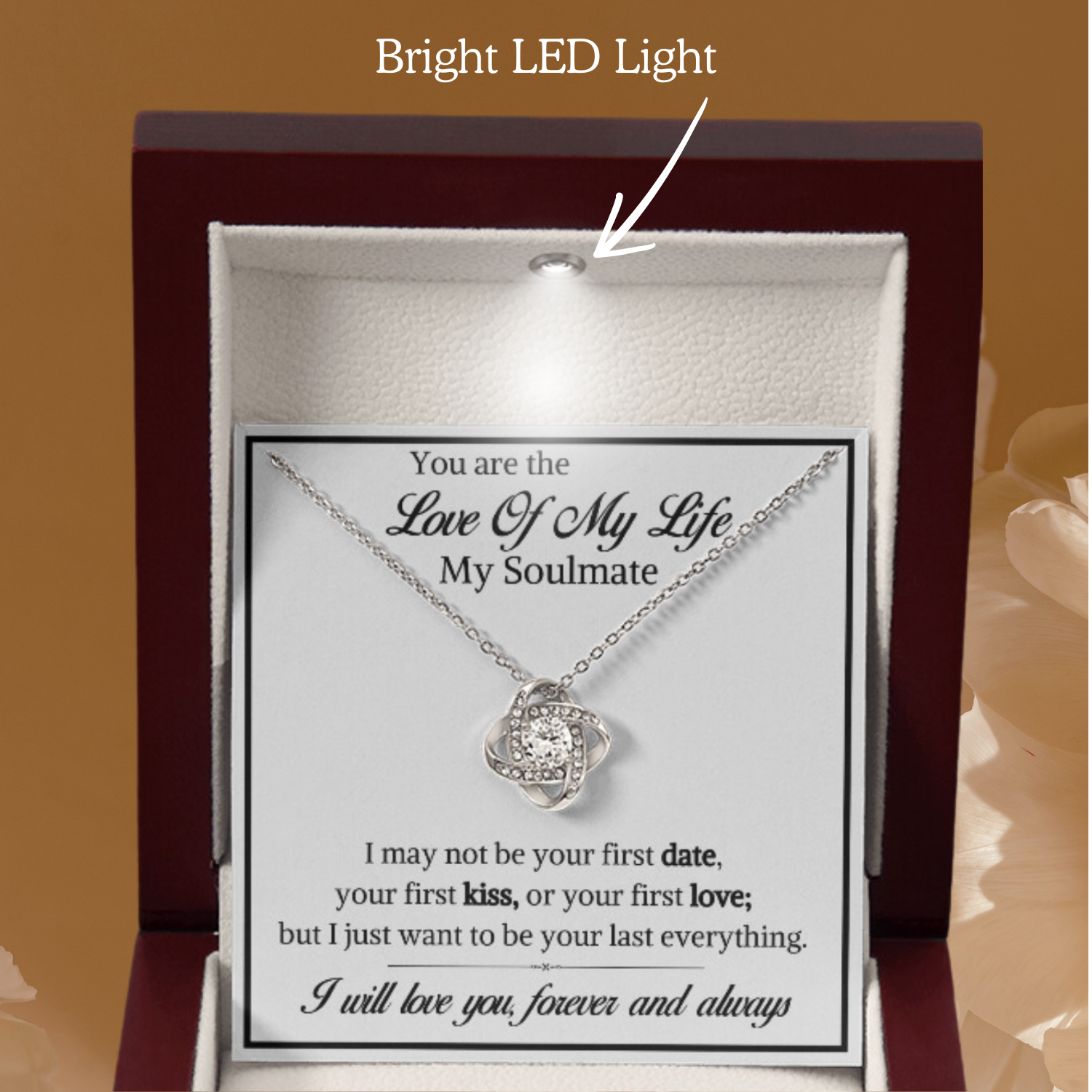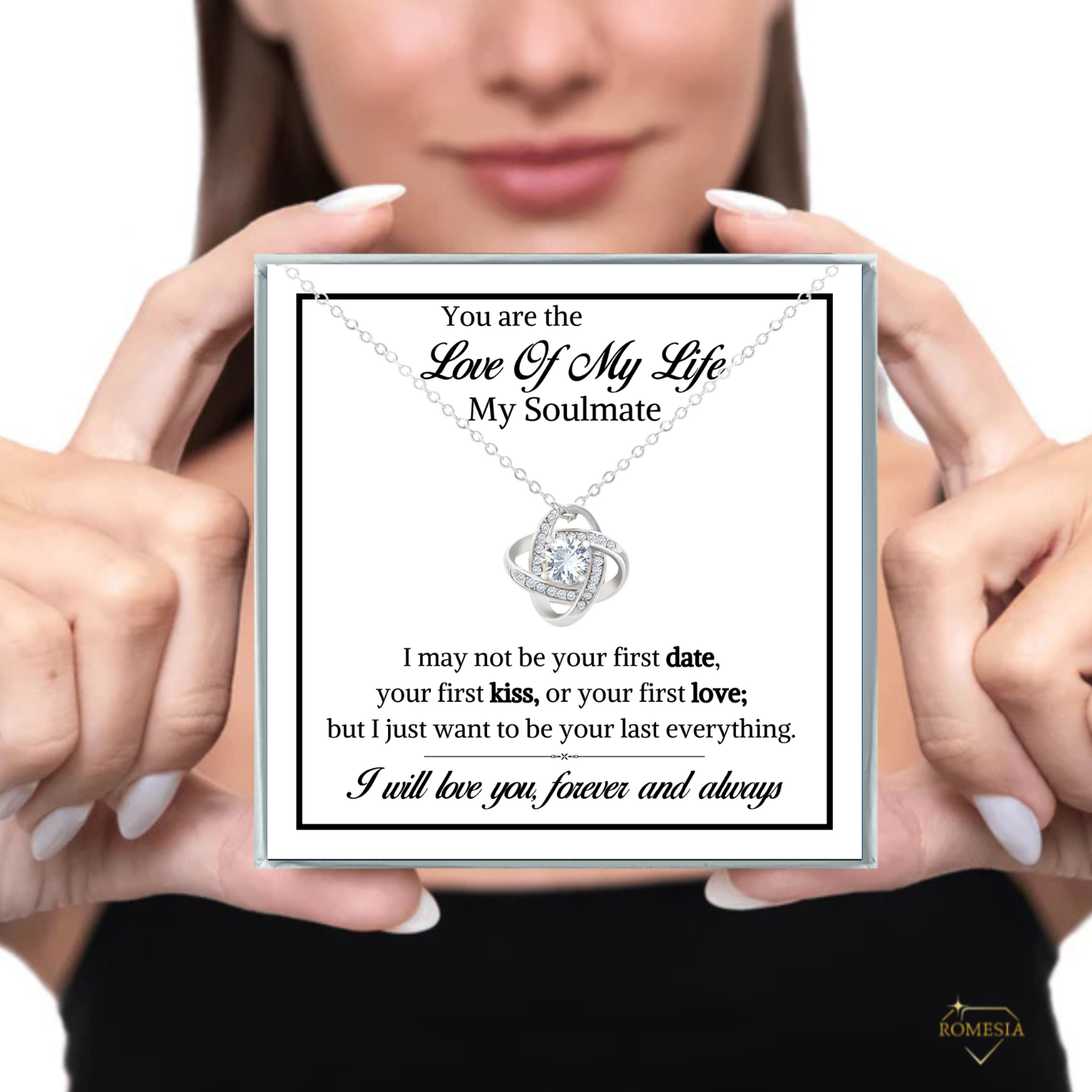 Imagine her reaction receiving this beautiful Love Knot Necklace. Representing an unbreakable bond between two souls, this piece features a beautiful pendant embellished with premium cubic zirconia crystals. Surprise your loved one with this gorgeous gift today!