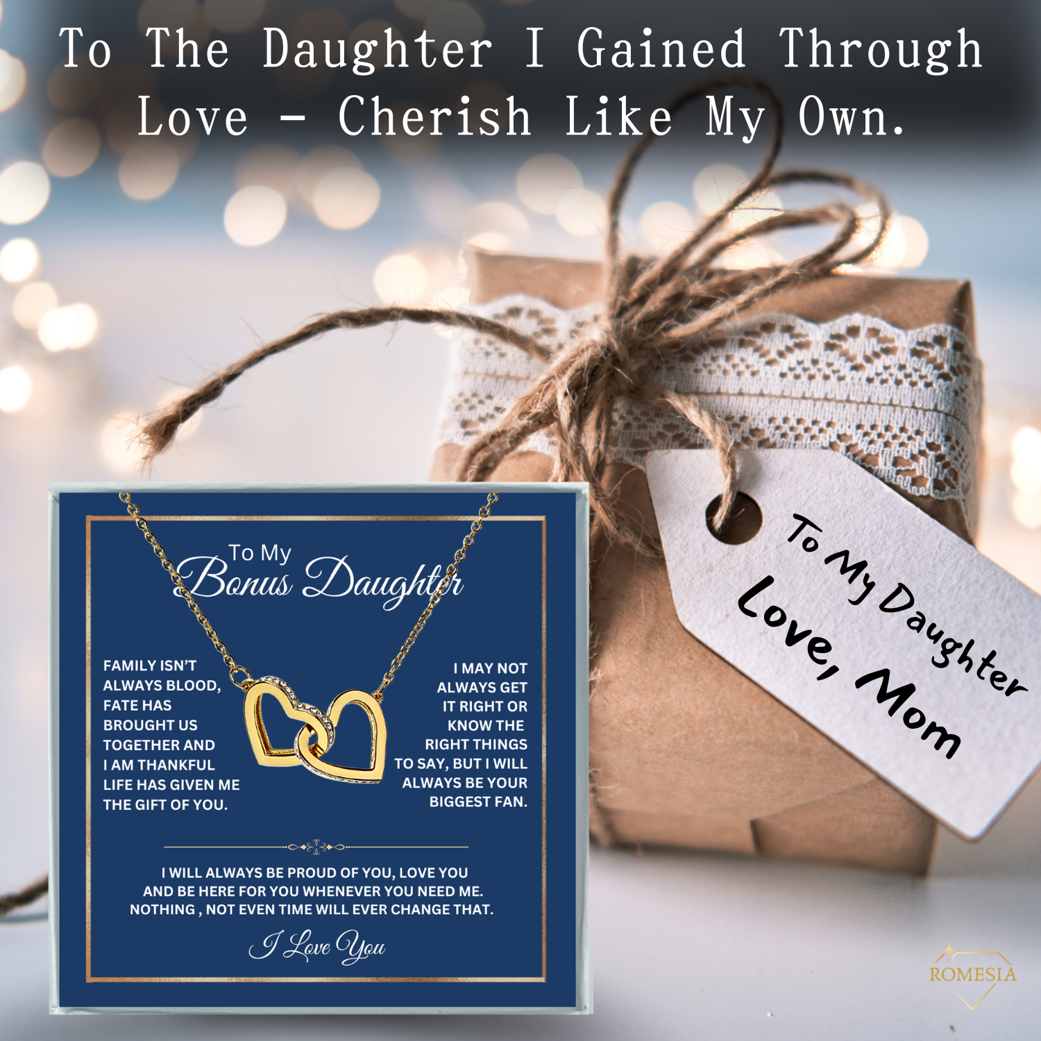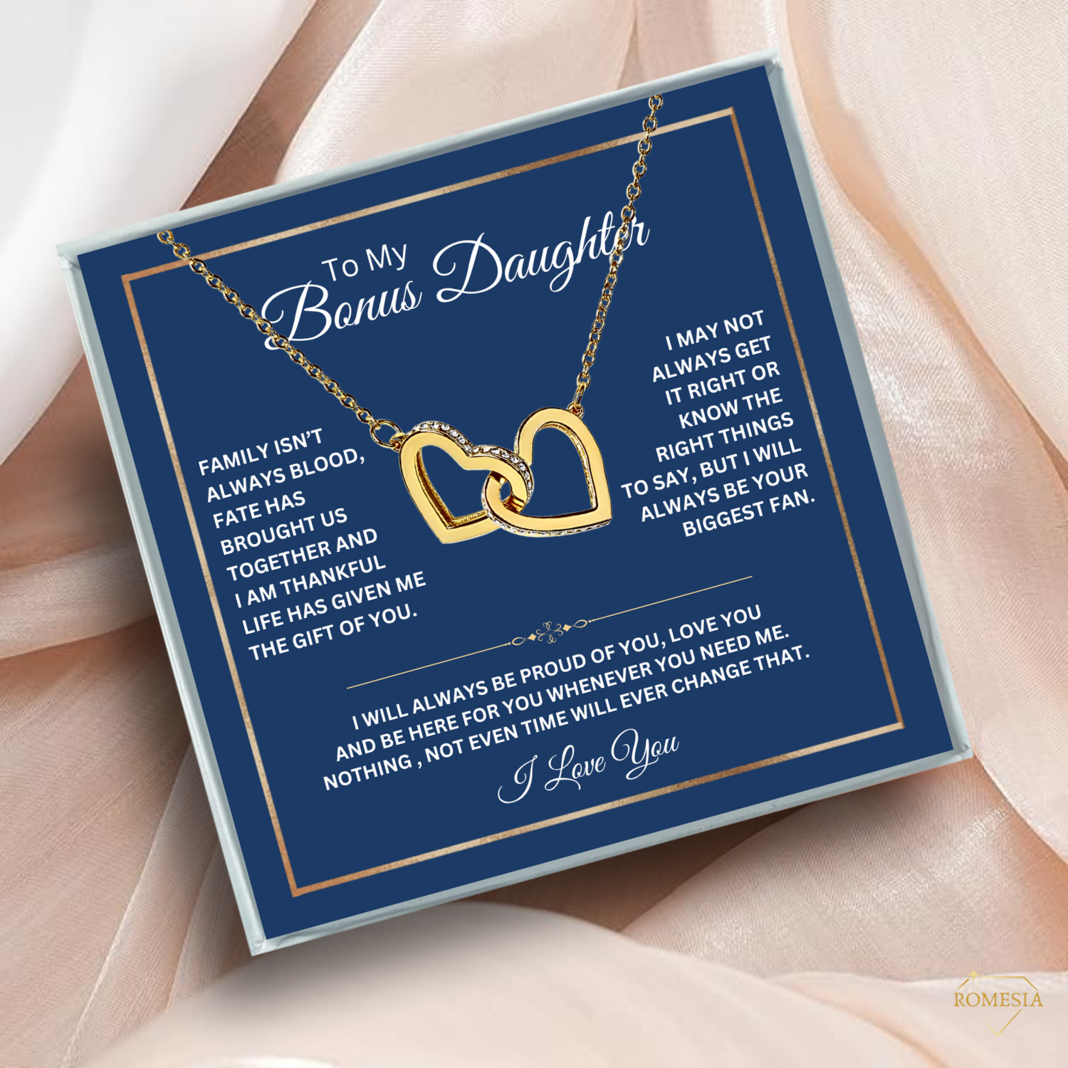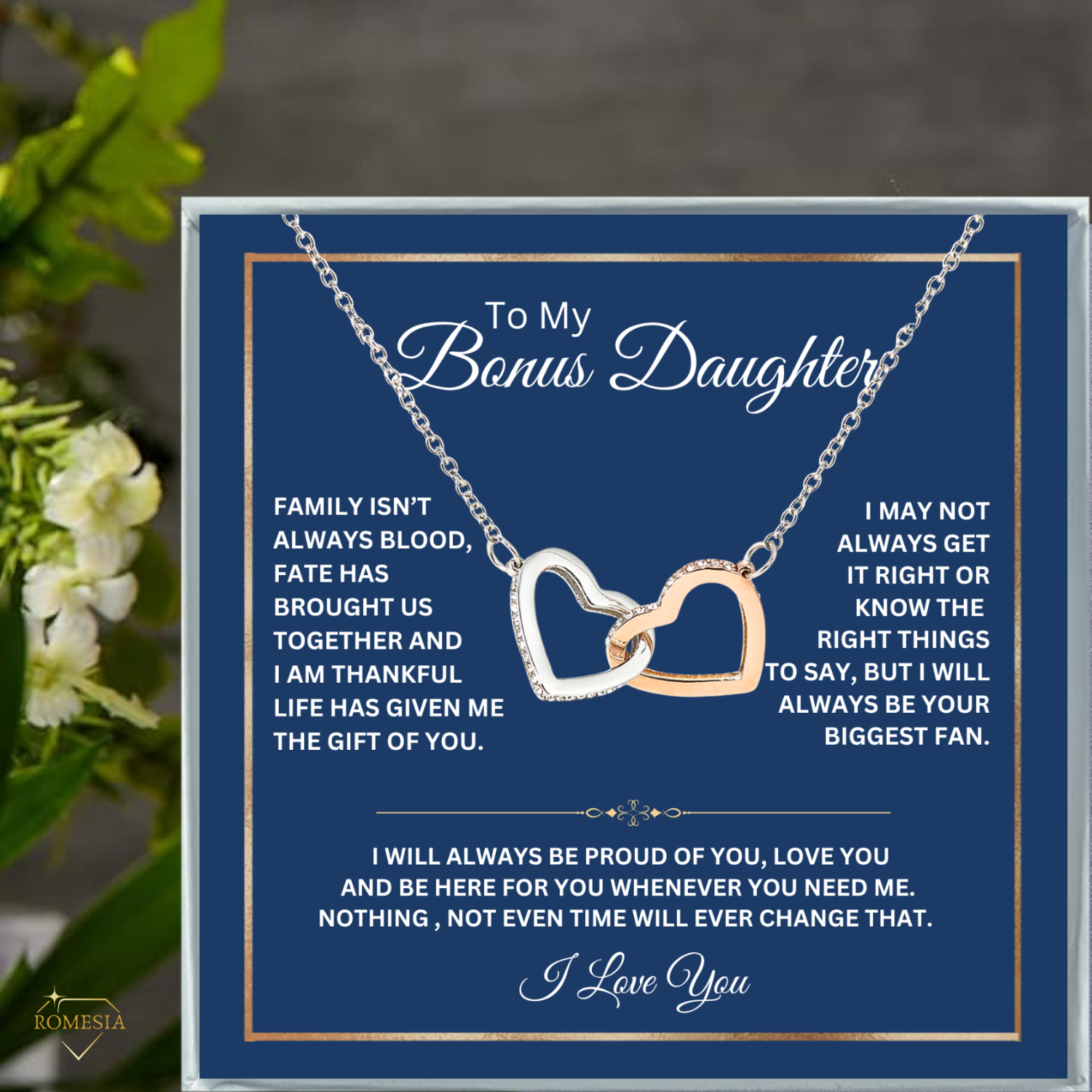 To My Bonus Daughter-Family Love- Interlocking Hearts Pendent