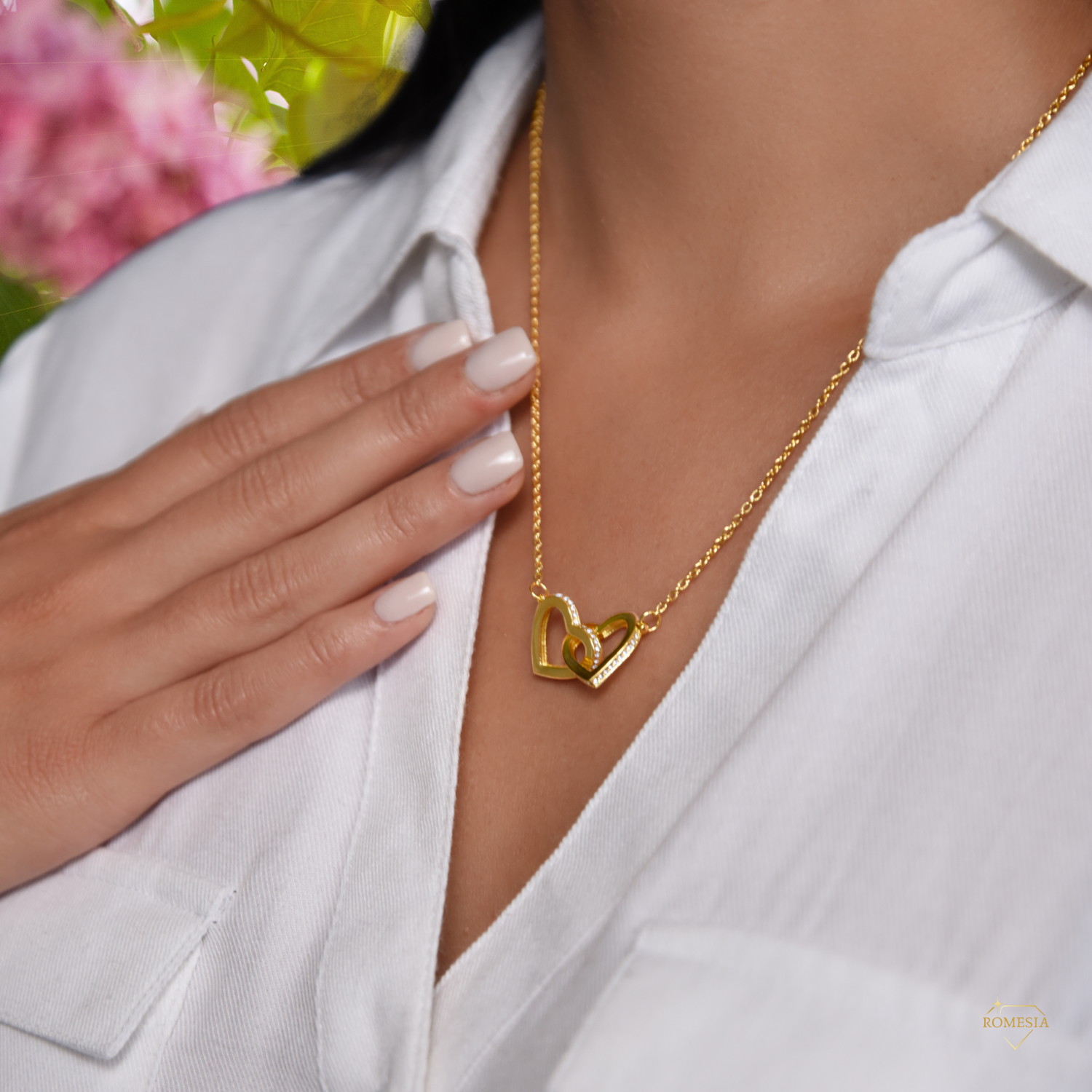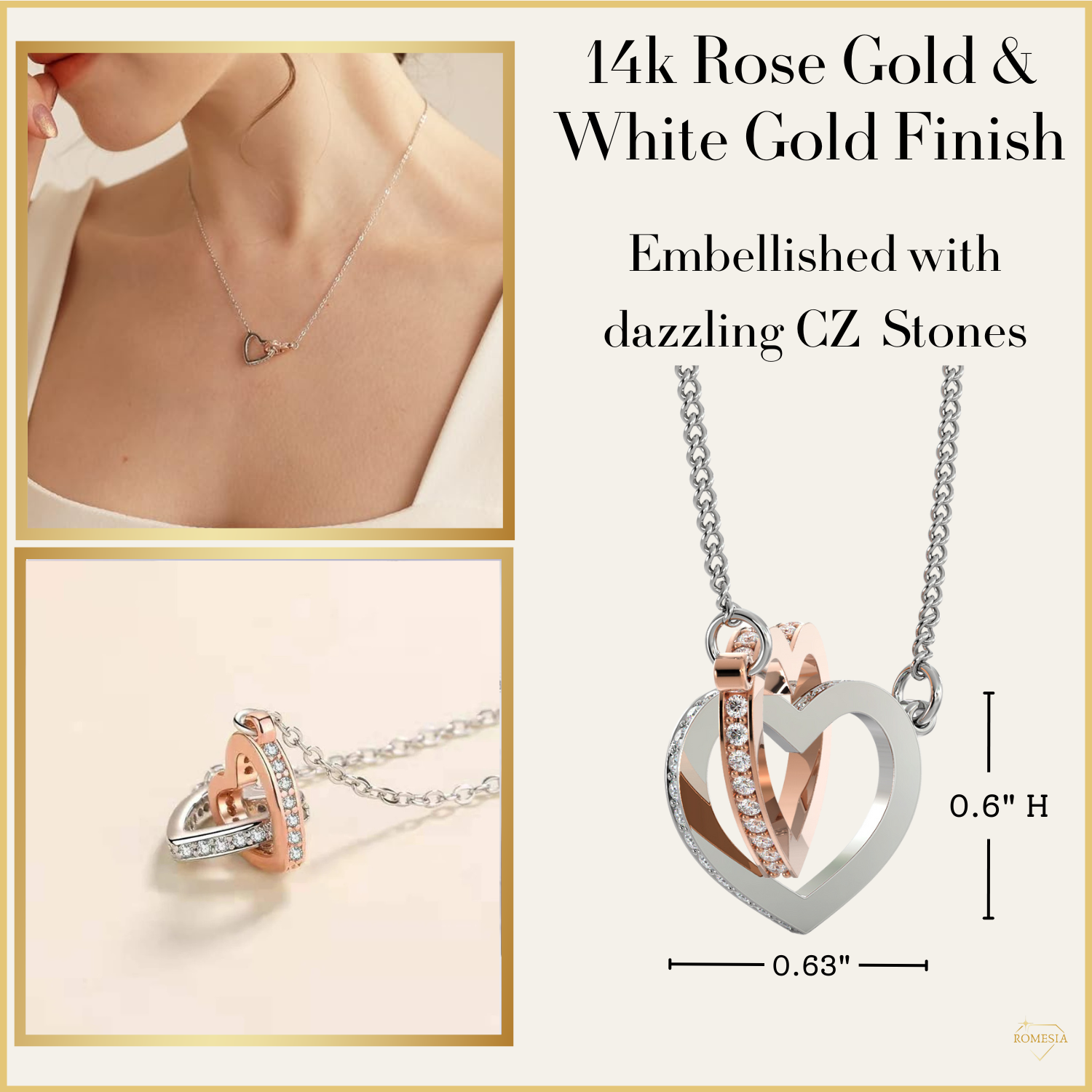 Give her the gift that symbolizes your never-ending love. Featuring two lovely hearts embellished with cubic zirconia crystals, this Interlocking Hearts necklace is the perfect accessory for everyday wear. Whether it's a memorable anniversary or a special birthday, make sure to dazzle your special someone by gifting them this stunning necklace